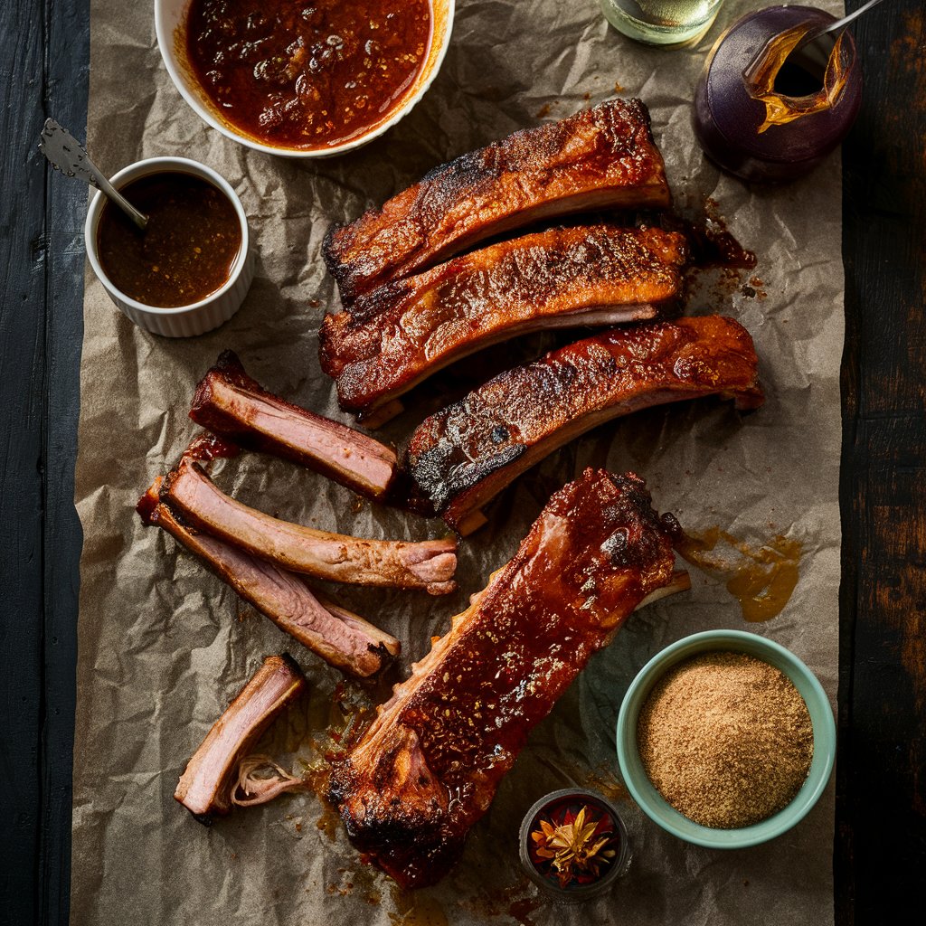 - In a bowl, combine all dry rub ingredients. Apply the rub generously to both sides of the ribs.